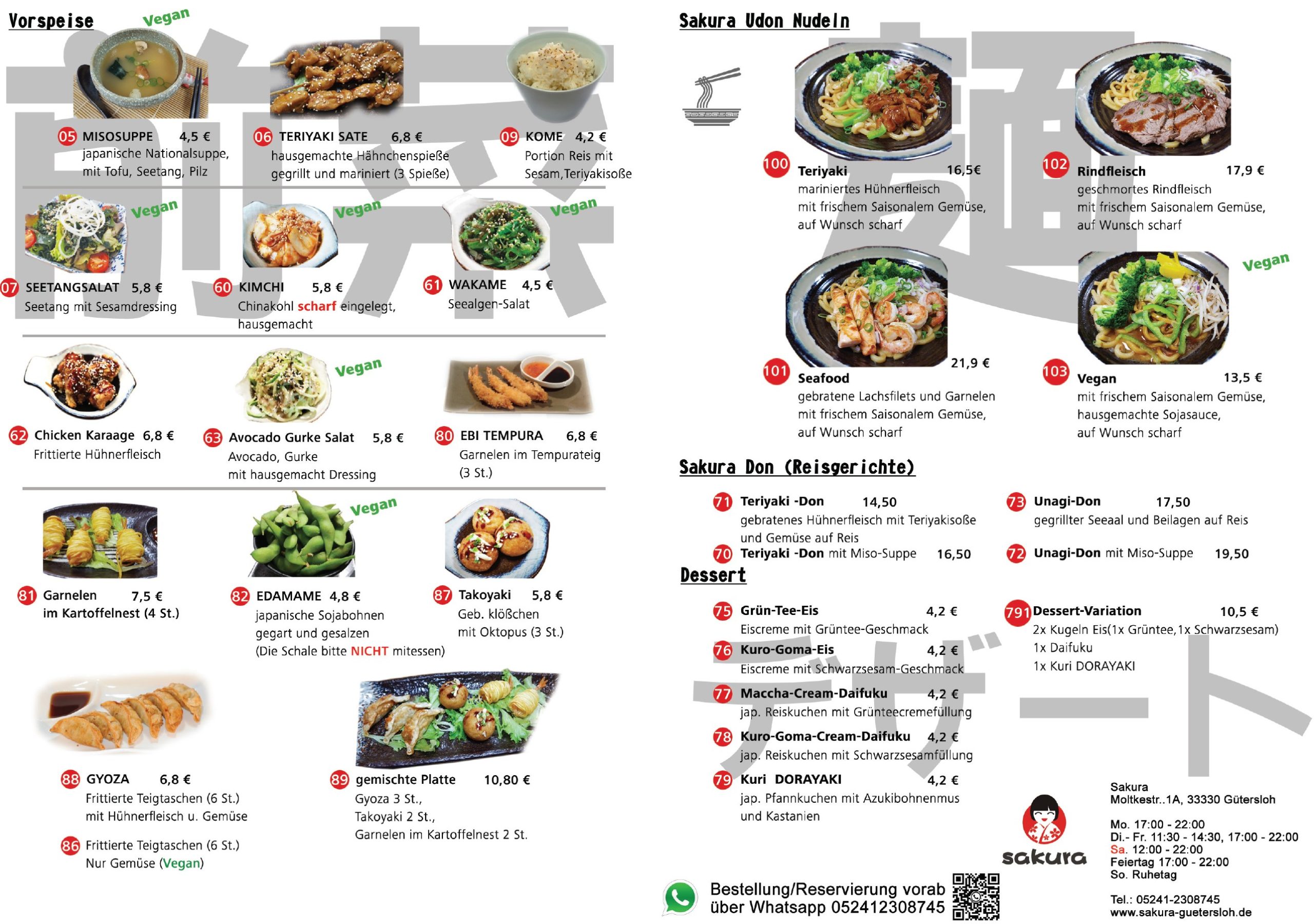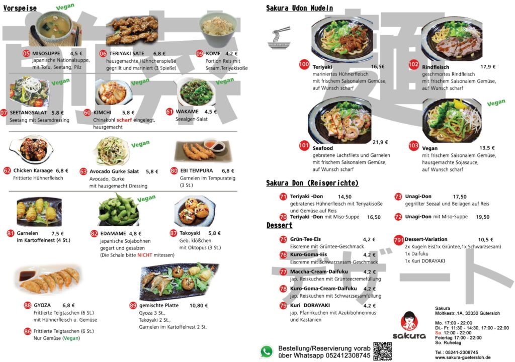 Sie könnten uns Ihre Bestellung auch per WhatsApp 052412308745 vorab außer Öffnungszeiten versenden, (Sende Sakura eine Nachricht auf WhatsApp. Klick hier! )